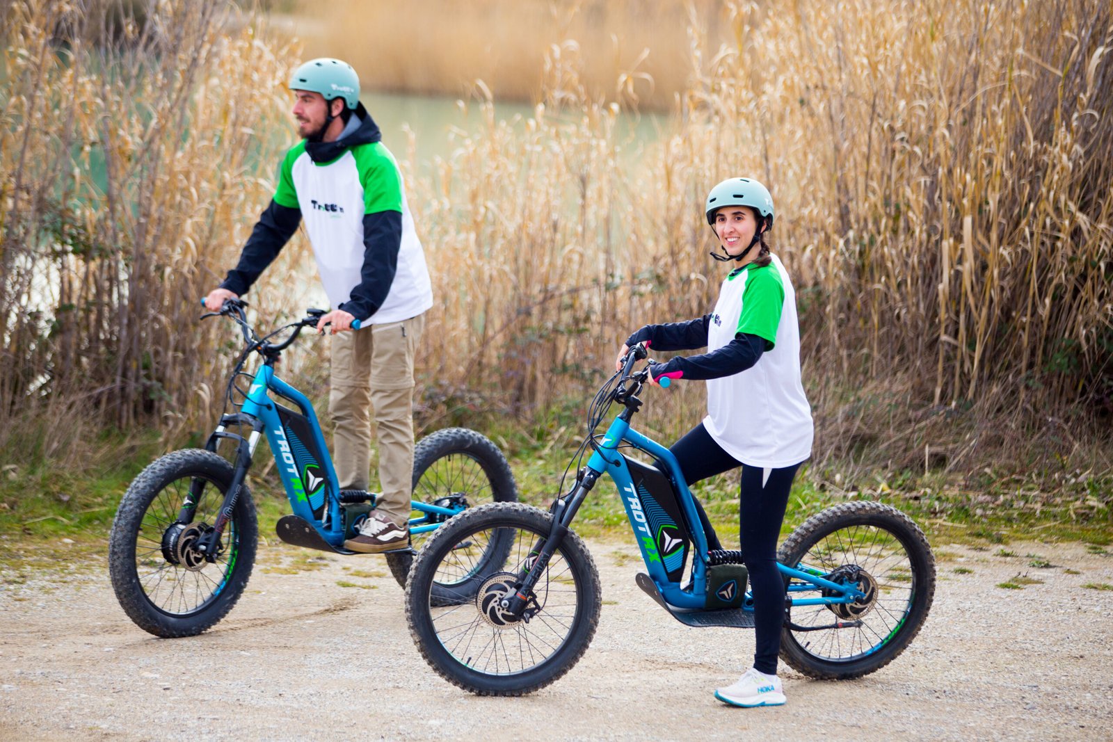 Balades guidées en trottinettes électriques tout-terrain, adaptées à tous niveaux.